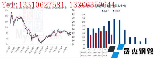 无缝向日葵色视频在线观看钢管厂家利润方面,截至5月27日,调研河北螺纹吨钢毛利-108元/吨,环比上月降低212元/吨,江苏螺纹吨钢毛利10元/吨,环比上月降低164元/吨。河北区域吨钢毛利持续下跌,目前钢价已经跌破无缝向日葵色视频在线观看钢管厂家生产成本。江苏区域吨钢毛利现处于盈亏线附近,无缝向日葵色视频在线观看钢管厂家利润十分微薄。