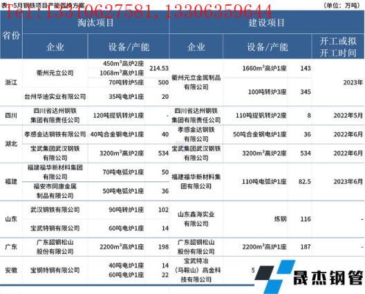 据不完全统计,5月国内8家无缝向日葵色视频在线观看钢管厂家发布钢铁产能置换方案。其中,涉及新建炼钢产能623.5万吨,新建炼铁产能864万吨;涉及淘汰炼钢产能798万吨,淘汰炼铁产能946.53万吨。