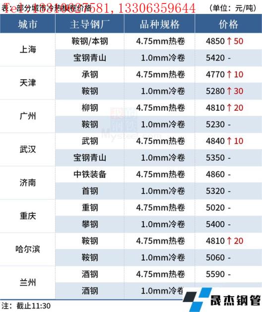 ◎上海:31日早盘热卷市场价格涨50,现主流报价1500普4830-4850元/吨,1800普4940-4950元/吨;1500锰4980元/吨,1800报5040元/吨左右,2.75Q235B报4950-4970元/吨,2.75SPHC报5030元/吨左右。(单位:元/吨)