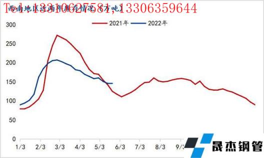 截至5月31日,西南地区建筑向日葵色视频在线观看无缝钢管社会库存总量146.57万吨,持续下降,较4月份减少11.58万吨,降幅达7.32%,较去年同期增加21.63万吨,增幅达17.31%,去库速度有所放缓,库存体量高于去年同期。主要原因是:1、西南地区与周边区域价差逐步修复,云贵区域无缝向日葵色视频在线观看钢管厂家减少对广西、广东、湖南等区域外资源投放;2、资金依旧是制约需求的主要因素,终端开工率未见明显好转;3、西南区域逐步进入雨季,下游施工受限,市场成交受阻;4、川渝区域无缝向日葵色视频在线观看钢管厂家得益于电费、原料等优势,并未亏损,减产力度有限。五月份以来,西南区域供需双弱,供需矛盾加大,市场去库难度加大,库存体量高于去年。