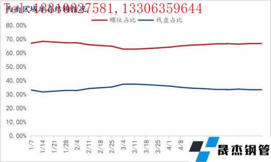 5月份以来全国建筑向日葵色视频在线观看无缝钢管价格震荡走低,焦炭价格虽有所回落,无缝向日葵色视频在线观看钢管厂家成本仍在高位,西南区域无缝向日葵色视频在线观看钢管厂家依旧亏损,无缝向日葵色视频在线观看钢管厂家继续选择规格生产,中间规格出现紧缺情况。5月份西南区域与周边区域螺纹钢价格价差逐步修复,广西、湖南等区域线盘价格依旧具备优势,无缝向日葵色视频在线观看钢管厂家选择外发线盘资源意向更强。西南区域社会库存结构比例中,线盘占比由之前的37.34%下降至33.27%,而本地需求尚未完全恢复,市场销售资源集中在12、14等高价规格,中间规格配比销售,销售难度加大,螺纹占比由之前的62.66%升至66.73%。综上,在无缝向日葵色视频在线观看钢管厂家选择性外发情况下,线盘库存占比逐步下降。