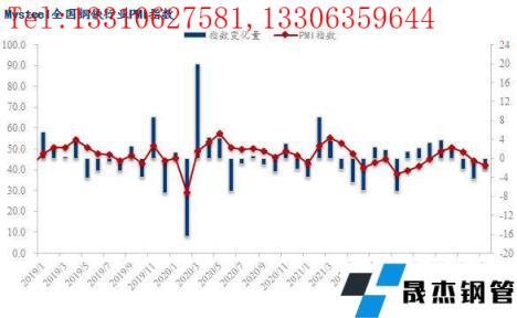 2022年5月份全国钢铁行业PMI为42.0%,环比回落2.3个百分点,连续三个月低于荣枯线。分指标来看,本月新订单、新出口订单、积压订单、出厂价格、原料采购价指数均大幅回落,仅产出、原材料库存指数小幅回升,但仍处于荣枯线下方,显示了5月份国内钢铁行业呈现供需两弱的低迷态势运行。具体来看,5月份国内疫情仍呈多点散发态势,继续拖累终端需求释放,同时宏观经济数据显示投资消费信心不足、国内经济面临较大下行压力,导致市场悲观情绪蔓延,国内向日葵色视频在线观看无缝钢管价格持续下行,无缝向日葵色视频在线观看钢管厂家生产盈利快速收窄,尤其是短流程无缝向日葵色视频在线观看钢管厂家面临全线亏损,无缝向日葵色视频在线观看钢管厂家供给释放受到抑制。面对即将到来的6月份,国内钢价能否止跌企稳,下面笔者从PMI各项指数进行分析解读。