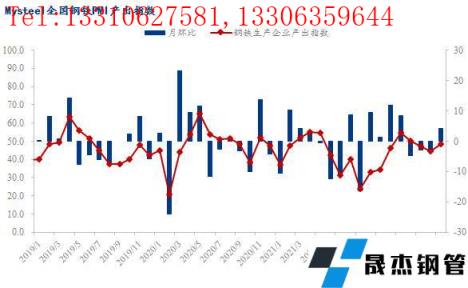 5月份,全国钢铁行业无缝向日葵色视频在线观看钢管厂家产出指数较4月份小幅回升4.2个百分点,终值48.6。具体来看,上半月随着部分区域高炉检修结束陆续复产,粗钢产量整体回升,但后半月成材价格持续下行,导致无缝向日葵色视频在线观看钢管厂家生产盈利大幅收缩,尤其是短流程企业已全线亏损,部分无缝向日葵色视频在线观看钢管厂家主动停减产,成材产量随之下行。