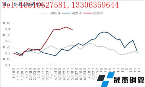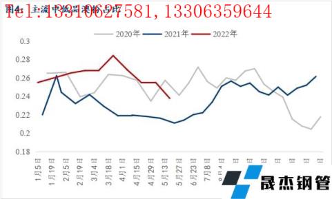 然而,4月份随着上海疫情的加重,终端需求复苏预期破灭,成材弱于原料,钢企利润持续收缩甚至已经出现亏损现象。在这种情况下,主流中低品澳粉价格对于无缝向日葵色视频在线观看钢管厂家来说仍然偏高,为此钢企只能进一步调整配比,再下调主流中高品粉矿配比的同时下调主流中低品粉矿的使用比例。如图4所示,中低品澳粉在3月底达到高峰28.4%时开始下降。