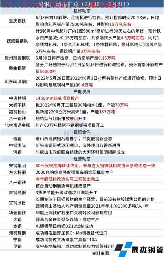 据不完全统计,本周(5月30日-6月2日)有5家无缝向日葵色视频在线观看钢管厂家发布检修计划,具体如下: