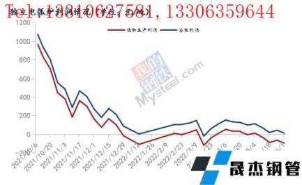 目前电弧炉无缝向日葵色视频在线观看钢管厂家仍亏损,仅谷电存在微利,减产、停产无缝向日葵色视频在线观看钢管厂家数量继续增加。