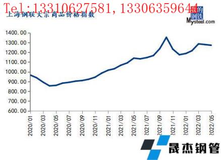 2022年5月份,上海钢联中国大宗商品价格指数(MyBCIC)终值为1271.36,同比上涨11.53%,环比下跌0.58%。