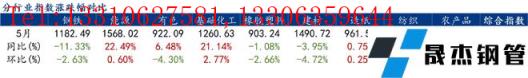5月份钢铁价格指数为1182.49,环比下跌2.63%,同比下跌11.33%。