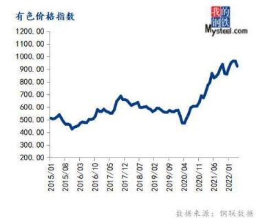 5月份有色金属价格指数为922.09,环比下跌4.30%,同比上涨6.48%。