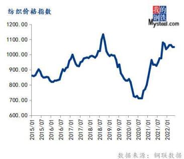 5月份纺织价格指数为1047.23,环比下跌0.23%,同比上涨12.03%。