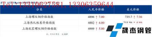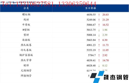6月6日普钢绝对价格指数变化:综合指数5080.66,上涨14.13;螺纹钢指数4850.55,上涨20.83;线材指数5249.06,上涨21.29;热轧板卷指数4901.23,上涨11.73;冷轧板卷指数5353.19,上涨11.05;中厚板指数5086.67,上涨16.52。