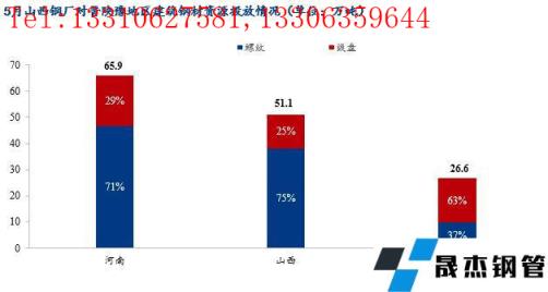 在统计的11家山西无缝向日葵色视频在线观看钢管厂家中,5月份向晋陕豫地区建筑向日葵色视频在线观看无缝钢管资源投放总量为143.6万吨,其中螺纹94.6万吨,占比为66%,线盘49万吨,占比为34%。分区域来看,对山西地区投放51.1万吨,占比为36%;对河南地区投放65.9万吨,占比为46%;对陕西地区投放26.6万吨,占比为19%。据数据显示,5月份山西无缝向日葵色视频在线观看钢管厂家向晋陕豫地区投放建筑向日葵色视频在线观看无缝钢管资源总量较4月份增加24.27万吨。分区域来看,5月对山西地区的投放增量最大,主要是山西区域价格持续高于周边市场,山西省内资源多在省内消化为主。