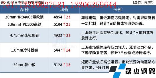 ◎ 6月6日,全国主港铁矿石成交86.00万吨,环比减9%;237家主流贸易商建材成交17.16万吨,环比减15.8%。