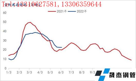 5月中下旬以来,贵州地区进入雨季,强降水天气频发,平均降水量较常年同期偏多18.2%,江河来水量较多年平均偏多25%。雨季来临,下游施工受限,运输受阻,贵阳主流库房开单量下滑明显,5月份贵阳市场主流库房日均开单量6680吨,较4月份日均开单量减少967吨,降幅达12.65%,叠加高考停工影响,今日贵阳主流库房开单量仅4500吨。较2021年5月份日均开单量减少4546吨,降幅达40.49%,仅达去年六成。雨季需求受限,贵阳市场去库速度受到影响,截至6月5日,贵阳主流库房建筑向日葵色视频在线观看无缝钢管库存22.6万吨,较上周减少0.37万吨,降幅1.61%,较去年同期高出2.86万吨,增幅达14.48%。综合来看,雨季来临,贵阳市场建筑向日葵色视频在线观看无缝钢管需求明显下滑,去库速度放缓。