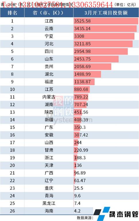 据悉,5月全国只有宁夏、云南、贵州3个省份相继举行省级重大项目集中开工活动,总投资额分别为3308亿元、3043亿元、2058亿元。