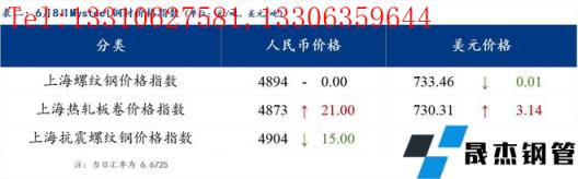 分地区方面,上海螺纹钢价格指数4894,持平0.0;上海热轧板卷价格指数4873,上涨21.0。(单位:元/吨)