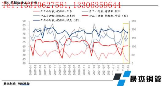4月挖掘机出口销量8445台,同比增长64%,增幅较去年收窄,目前出口量占到挖掘机总销量的40.95%,较去年同期增加22.03个百分点,出口对挖掘机销量贡献明显增加。但分析来看,未来挖掘机出口销量增长空间收窄,主要原因包括以下几个方面:1、中国作为制造业大国,在去年疫情修复后为全球工业产品供应发挥了重要作用,目前全球制造业供应链逐渐恢复正常,对中国进口需求下降。2、海外市场需求转弱,从小松挖掘机公布的各国挖掘机开工小时数来看,5月日本、印尼开工小时数均呈现环比下滑趋势,北半球开始进入施工淡季,对挖掘机需求减弱。