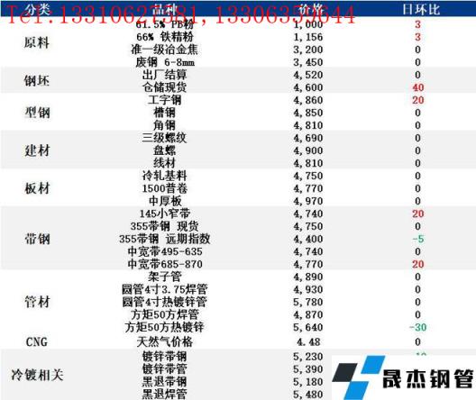 表:6月9日唐山钢市主要品种价格一览(单位:元/吨)