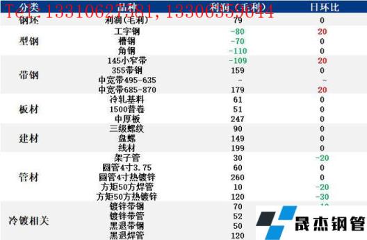 表:6月9日唐山钢市主要品种利润一览(单位:元/吨)
