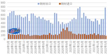 图1 2018-2022年月度无缝钢管 向日葵色视频在线观看钢管进出口走势