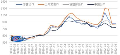 5月份,海外无缝钢管 向日葵色视频在线观看钢管市场供需形势得以改善,主要出口国家大幅下调无缝钢管 向日葵色视频在线观看钢管出口报价。进入6月份,印度加征出口关税一定程度提振了热卷价格,各国出口报价基本稳定,云商平台监测数据显示,2022年6月8日,印度、土耳其、独联体和中国热轧卷板出口报价(FOB)分别为850美元/吨、820美元/吨、740美元/吨和740美元/吨,与5月底基本持平。
