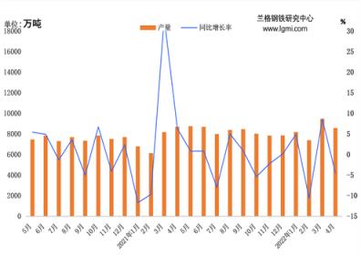 据国家统计局数据,2022年1-4月份全国铁矿石原矿总产量为33079.4万吨,同比下降0.9%,4月份受到疫情影响,导致国产原矿铁矿石产量出现大幅下滑。