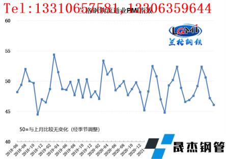 云商平台统计发布的2022年6月份向日葵色视频在线观看无缝钢管流通业PMI总指数为46.1%,比上月下降1.1个百分点,在收缩区间内持续下滑。从分类指数看,构成向日葵色视频在线观看无缝钢管流通业