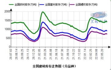 据云商平台监测数据显示:2022年6月24日,全国向日葵色视频在线观看钢管社会库存指数为154.9点,比上月上升2.50%,比去年同期上升10.92%;其中建材社会库存指数为221.1点,比上月上升1.43%,比去年同期上升16.58%;螺纹钢社会库存量为734.59万吨,比上月上升1.83%,比去年同期上升15.38%;伴随着向日葵视频污APP下载部分检修减产,及需求的缓慢释放,库存上升势头开始有所放缓,临近月末开始由升转降。