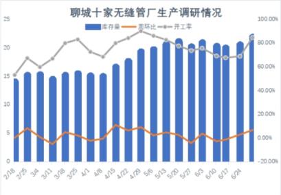 图5 2022年上半年聊城十家无缝管总库存及开工率