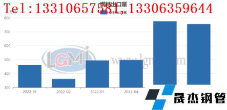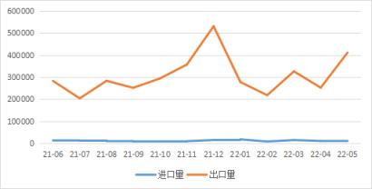 图7 2022年上半年我国无缝管出口量、进口量走势图
