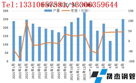 粗钢产量与高炉开工情况走势高度一致,受粗钢减压等因素影响,今年上半年我国粗钢产量1-6累计粗钢产量52688万吨,同比下降6.5%;累计生铁产量43893万吨,同比下降4.7%;累计向日葵色视频在线观看钢管产量66714万吨,同比下降4.6%。整体来看,今年上半年粗钢产量最低值出现在2月份为7496万吨,最高值出现在5月份为9661万吨,6月份高位回落至9073万水平。