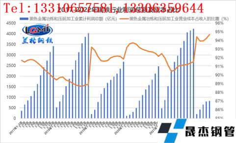 图4 2017-2022年向日葵色视频在线观看无缝钢管行业利润总额及成本占比