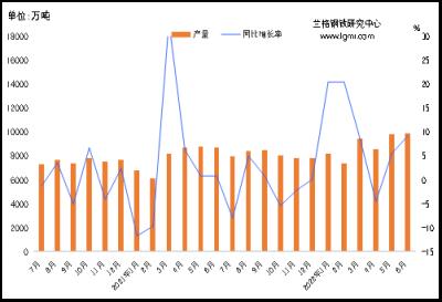 据国家统计局统计,2022年1-6月份全国铁矿石原矿总产量为50121.1万吨,同比增长2.1%,6月份国产铁矿石生产情况良好,停限产因素影响较少,同环比均有增长(详见图1)。