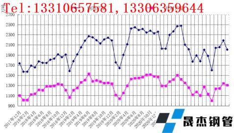 图1 国内建筑向日葵色视频在线观看钢管均价走势图