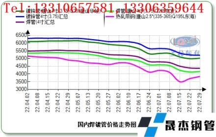 7月国内焊管、镀锌管价格逐步探底,阶段反弹。据云商平台监测数据显示,截至7月29日,全国4寸(3.75)国标焊管平均价格4353元,比上月同期下跌444元,全国4寸(3.75)镀锌管平均价格5195元,比上月同期下跌454元;全国50*50*2.5方管平均价格4457元,比上月同期下跌326元;全国219*6螺旋管平均价格4745元,比上月同期下跌428元;持续探底行情下,焊镀管价格反弹相对上游滞后。