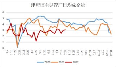 焊镀管成交市场表现弱于上游。7月在统计11家管厂日均出货量2.91万吨,较上月增长8.99%,较年内均值增长6.99%,月内有增有减,需求波动仍然较大;在统计市场月内成交量较上月下降2.47%,较年内均值增长6.38%。行情快速探底,华东疫情反复,中下游的需求更弱,加重贸易商迟疑心态,水池效应弱化风险加大,部分7月任务差量占到7-10天协议量。国内在统计焊管社会库存85.8万吨,较年初下降1.36%,贸易商波段操作增加,实质降库速度远低于往年。8月,疫情后及地产复工的回补需求逐步释放,焊镀管社会库存的增幅或低于往年。