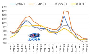 8月份以来,亚洲区域向日葵色视频在线观看无缝钢管市场价格坚挺,而欧洲区域向日葵色视频在线观看无缝钢管市场价格明显走弱。云商平台监测数据显示,2022年9月5日,印度、土耳其、独联体热轧卷板出口报价(FOB)分别为585美元/吨、605美元/吨和520美元/吨,分别较7月底上涨5美元/吨、下跌75美元/吨、下跌35美元/吨;中国热轧卷板出口报价(FOB)为575美元/吨,较7月底下跌5美元/吨。目前我国热卷出口报价除较土耳其出口、印度略有一定价格优势外,高于独联体出口报价55美元,显示我国向日葵色视频在线观看钢管出口报价优势已明显不足。