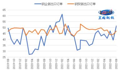 据中物联向日葵色视频在线观看无缝钢管物流专业委员会数据显示,2022年8月,向日葵色视频在线观看无缝钢管生产企业新出口订单指数为51.6%,较上月明显回升12.2个百分点。云商平台统计发布的2022年8月份向日葵色视频在线观看无缝钢管流通业PMI数据显示,8月份向日葵色视频在线观看无缝钢管贸易企业新出口订单指数为47.1%,虽仍在收缩区间运行,但较上月回升了2.9个百分点。